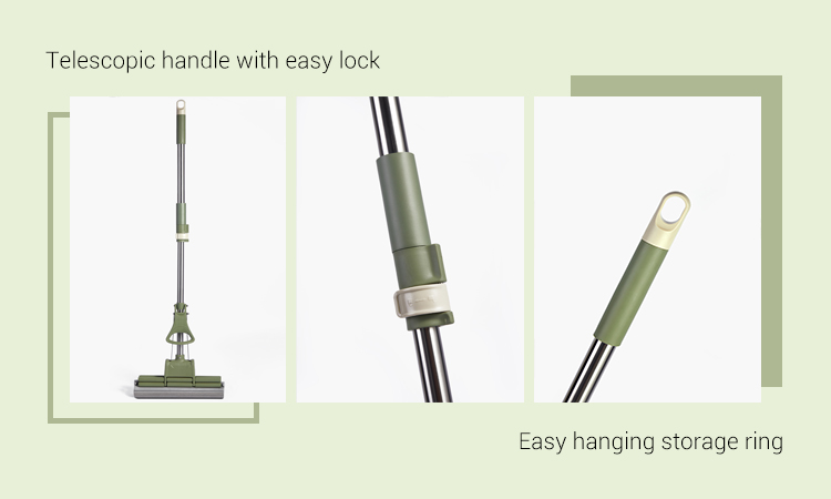 RP-03 Double Roller Squeeze Water Absorbent 27cm PVA Sponge Mop with Telescopic Mop Handle